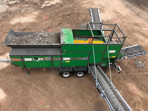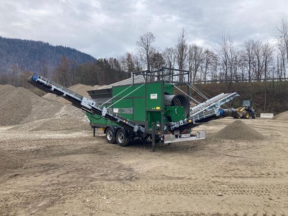 Mit Hilfe eines optionalen Aufsteckrings kann die Anlage innerhalb weniger Minuten in eine Drei-Fraktionen-Siebanlage umgerüstet werden und kann so auch für den GaLaBau (wie die großen) drei Fraktionen in einem Arbeitsgang aussieben.