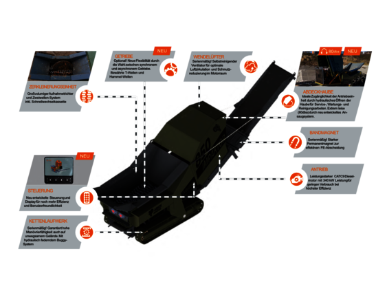 Dank austauschbarem Siebkorb lässt sich die Fraktionsgröße flexibel anpassen, während die Abwurfhöhe von 4.500 mm optimale Logistikbedingungen schafft. Die neu entwickelte Luftzirkulation sorgt für eine konstante Kühlung und schützt alle Komponenten zuverlässig vor Überhitzung.