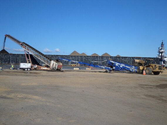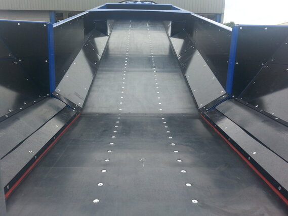 Der neu entwickelte RTU220 ist ein neues Konzept für die Schüttgutförderung. Die Maschine ist dafür ausgelegt, stetig und direkt von Sattelzügen und Muldenkippern in Eisenbahnwagen, Frachtkähnen, Schiffen und Einfülltrichter umzuladen. Sie ist genauso leicht im Hafen wie im harten Umfeld einer Kiesgrube oder eines Bergbaubetriebs zu bedienen. Die riesige Aufgabetrichterkapazität von 23 m³ verbessert die Zykluszeiten und die Anlagenproduktion. Durch den Zugang von 3 Seiten und die zusätzliche Funktion der hydraulisch klappbaren, schrägen Seiten kann der RTU220 Aufgabetrichter direkt durch Radlader, Hydraulikbagger und Greiferkräne beschickt werden. Bei einer Förderkapazität von 750 t/h und einer maximalen Aufgabekorngröße von 600 mm sowie seinem 180°-Schwenkbandförderer ist der RTU220 die erste Wahl bei vielen Anwendungen.